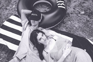 筒状に丸めた際に「POOL」のロゴが目を惹くデザイン。綿100%なのでお手入れが簡単で日常使いにおすすめです。大判サイズなので、プールやビーチサイド用のタオルとしてはもちろん、アウトドアシーンではラグの代わりにも活躍し、1枚あると季節を問わず重宝します。